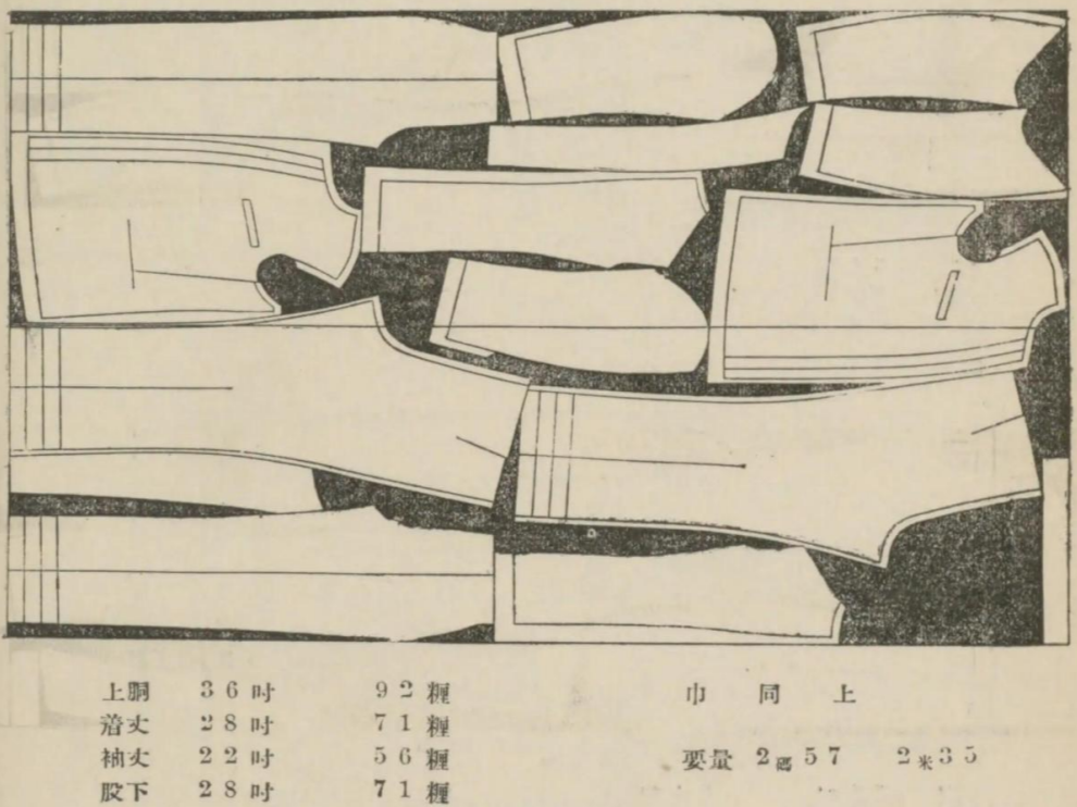 ※スーツの型紙。体にフィットさせるため、曲線状に裁断し、立体的に縫製する。残布(黒塗り部分)は再利用が難しく、廃棄される場合が多かった。