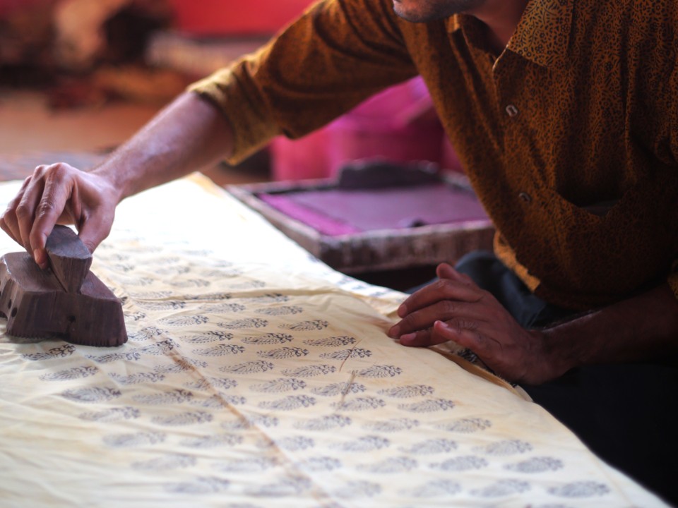 インドの木版更紗の制作風景。(パブリックドメイン, Wikimedia Commons)