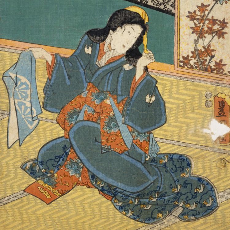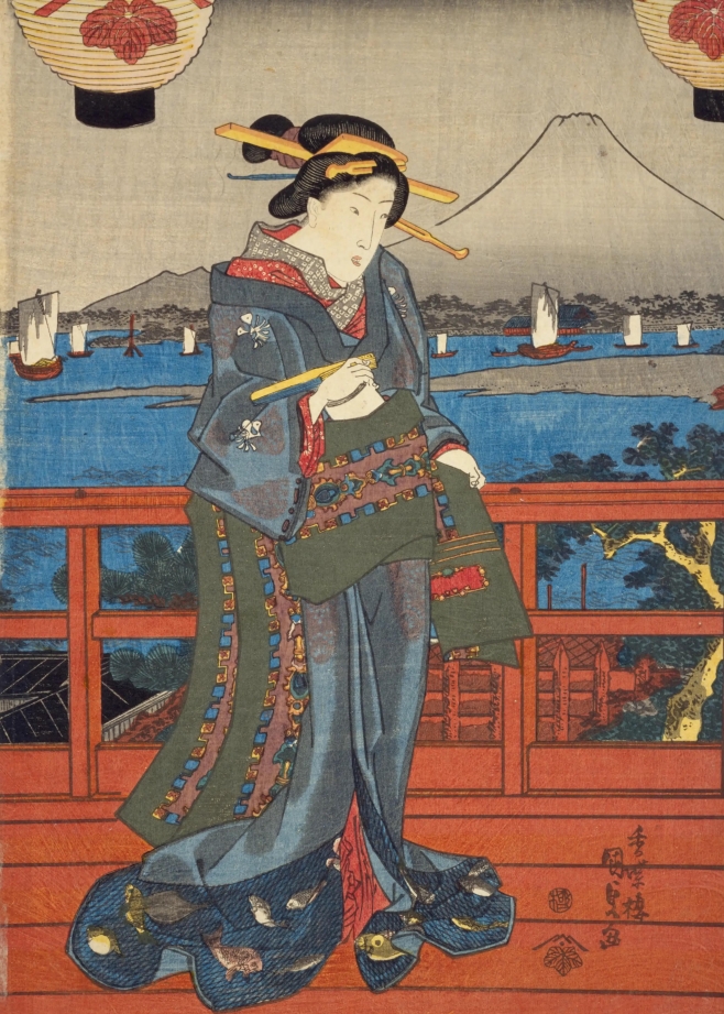 (国貞『流行美人合〔望楼廊下の三婦女〕』国立国会図書館デジタルコレクション)