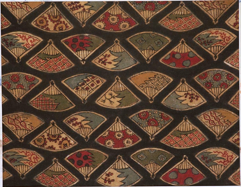 「黒地扇模様更紗裂(扇手)」(画像出典:東京国立博物館ウェブアーカイブ)