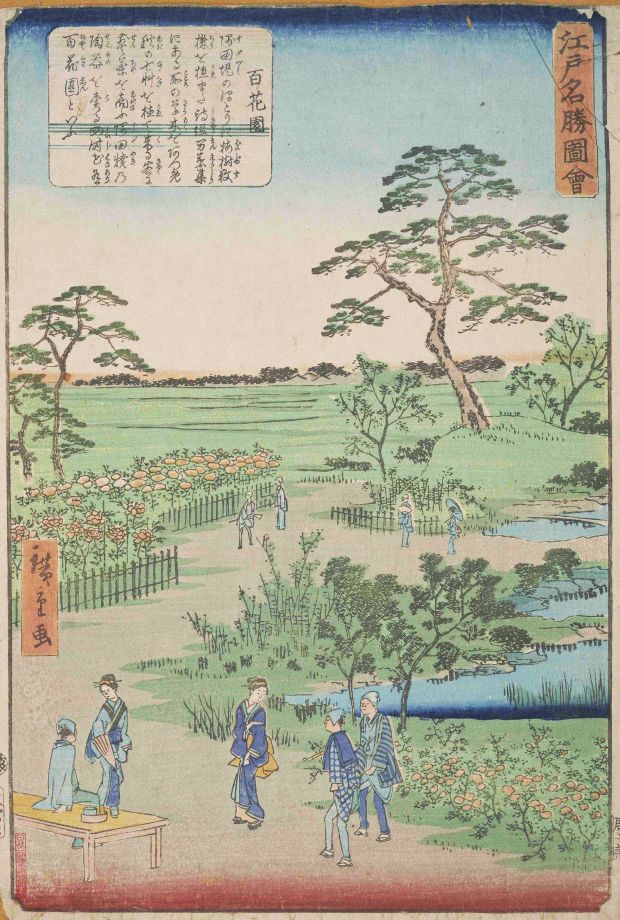 ※この絵は梅の季節ではありませんが、往時の百花園の様子です。この頃から美しい草花を楽しむことのできる庭園として人々に親しまれていたようです。