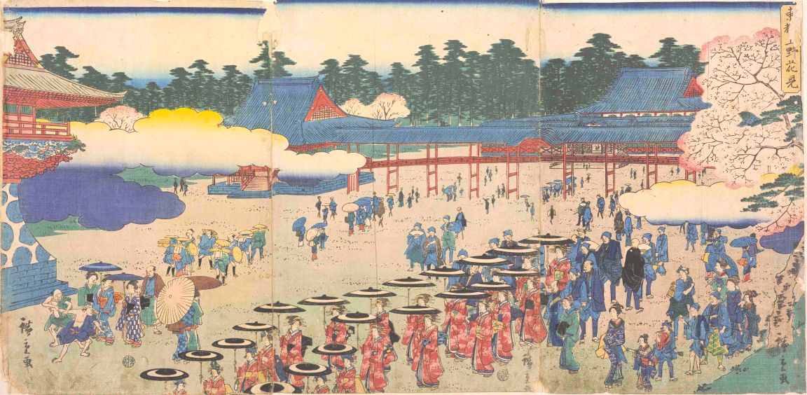 桜の名所としての上野は、徳川家の菩提寺であった寛永寺の境内に、第3代将軍・家光が奈良の吉野を模して桜を植えたことに始まるといい、江戸の中心から近かった上野は、観光地としても賑わうようになりました。