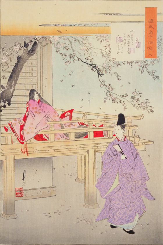 光源氏と朧月夜は宮中で催された桜花の宴で出会います。