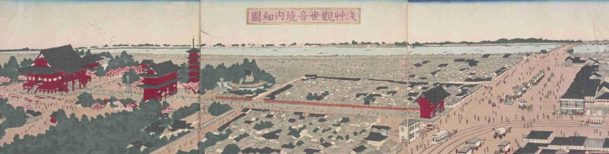 場所としては次項でご紹介する隅田川の近くではありますが、単体での有名さも考慮して個別で取り上げました。同じ仏閣の寛永寺とは打って変わり、門前の町並みは当時からかなり賑やかで庶民的な場所であったことが知られています。商店や飲食店、芸人による見世物などが大いに繁盛しました。名人芸が評判となり、8代将軍・吉宗がその見世物を見るために訪れたとの記録も伝わります。庶民的なところも今に受け継がれているといえるかもしれません。