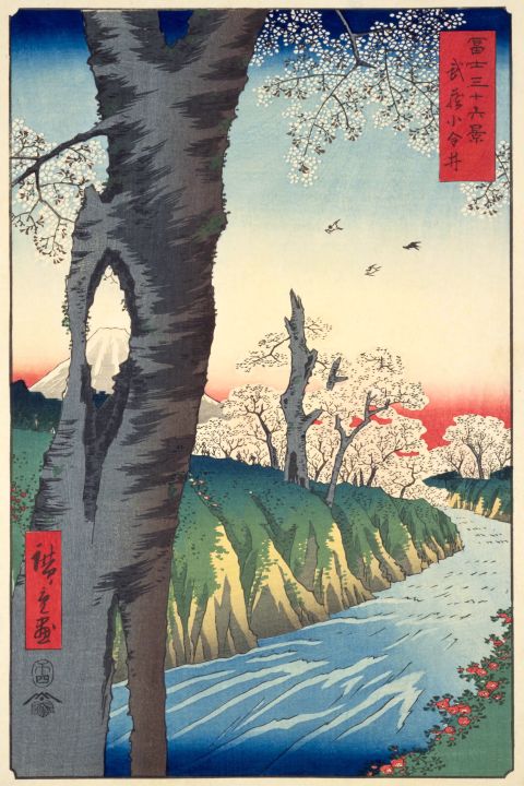 徳川吉宗の政策の下で新田開発が進められた武蔵野台地の一角に位置します。元文2年(1737年)、奈良の吉野や茨城の桜川からヤマザクラを取り寄せ、小金井橋を中心とする玉川上水の両岸約6kmに植樹されたと伝えられます。18世紀の終わり頃には江戸近郊有数の花見の名所となり、著名な文化人達も花見に訪れました。
